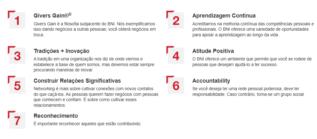 Valores fundamentais do BNI